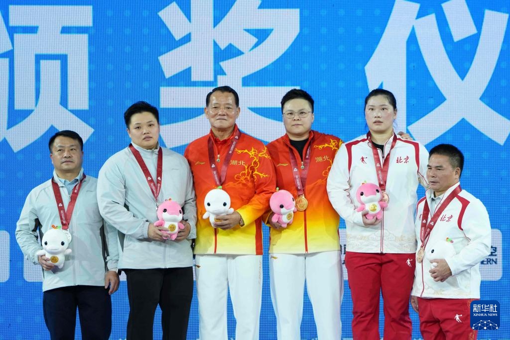 11月14日,湖北队冠军选手王周雨(右三)、单打亚军选手敖辉(左二)、北京队排名第三选手包扬谦(右二)在颁奖典礼上与教练合影。当日,第十五届全国女子87公斤级举重决赛在东莞举行。新华社记者杨晨光供图。 11月14日,个人运动员敖辉参加抓举比赛。最终他获得了第二名。当日,第十五届全国女子87公斤级举重决赛在东莞举行。新华社 杨晨光 供图 11月14日,湖北省队运动员王周宇参加挺举比赛。最终,她赢了。当日,第15周末在东莞举行的全国女子87公斤级举重比赛。新华社记者 杨晨光 供图 11月14日,王Z湖北省队运动员侯宇庆祝在挺举比赛中取得成功。最终,她赢了。当日,第十五届全国女子87公斤级举重决赛在东莞举行。新华社记者 杨晨光 供图 11月14日,湖北队运动员王周宇在挺举比赛前加油。最终,她赢了。当日,第十五届全国女子87公斤级举重决赛在东莞举行。新华社杨晨光供图 11月14日,湖北队运动员王周宇在抓举比赛中成功举起后庆祝。最终,她赢了。当日,第15届全国女子举重87公斤级决赛在东莞举行。新华社 杨晨光 供图 11月14日,湖北省队运动员王周宇参加挺举比赛。最终,她赢了。同日,第15届全国全国举重女子87公斤级决赛在东莞举行。新华社 杨晨光 供图 11月14日,湖北省队运动员王周宇参加挺举比赛。最终,她赢了。当日,第十五届全国女子87公斤级举重决赛在东莞举行。新华社记者 杨社光 供图 11月14日,北京队队员鲍杨谦参加抓举比赛。最终他获得了第三名。当日,第十五届全国女子87公斤级举重决赛在东莞举行。新华社记者 杨晨光 摄11月1日,4日,志愿者与乐荣荣吉祥物赛前互动。当日,第十五届全国女子87公斤级举重决赛在东莞举行。新华社记者 杨晨光 供图 11月14日,吉祥物“喜羊羊”前表演游戏。当日,第十五届全国女子87公斤级举重决赛在东莞举行。新华社记者 杨晨光 供图 11月14日,湖北省队运动员王周宇参加挺举比赛。最终,她赢了。当日,第十五届全国女子87公斤级举重决赛在东莞举行。新华社记者 杨成光 供图。