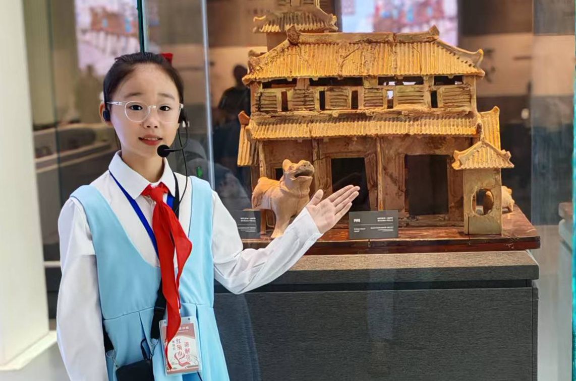 尽管年纪轻轻,这些年轻的解说员却表现出了极大的专业精神,分地域、分主题讲解了秦睡虎竹简、东汉陶瓷塔、“中国最长的文杯”等重要文物。在孩子们清晰的声音和自信的手势中,他们注入了自己的理解和情感,讲述着文物背后的历史故事,“让他们o 不再冷漠,而是一个可识别且易于理解的故事。”